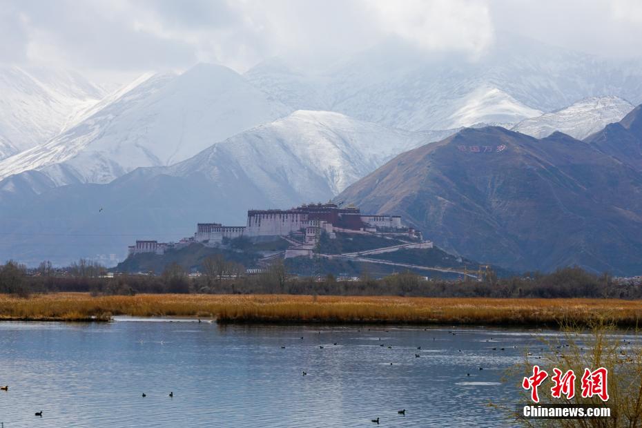 2月26日至27日,海拔3600多米的高原古城拉薩再次迎來降雪天氣,拉薩河兩(liang) 岸延綿的山體(ti) 猶如披上了一層白紗,一派高原特色城市風光,景色秀麗(li) 。布達拉宮觀景台、拉薩南山公園等地吸引了不少旅遊攝影愛好者“打卡”古城雪景。圖為(wei) 從(cong) 拉魯濕地遠眺布達拉宮與(yu) 雪山風光。