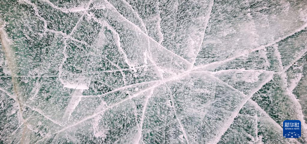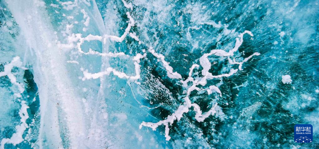 這是瓊穆崗嘎冰川冰湖湖麵的“氣泡冰”(手機照片,2月20日攝)。新華社記者 沈虹冰 攝