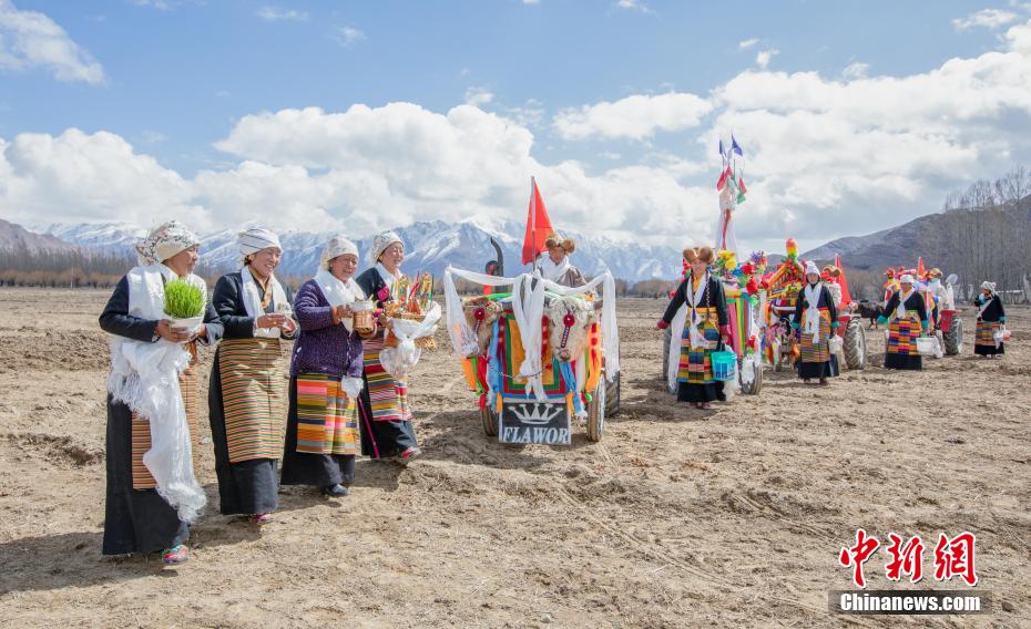 圖為(wei) 拉薩市林周縣朱加村,村民穿著節日盛裝舉(ju) 行傳(chuan) 統春耕儀(yi) 式。林周融媒 供圖