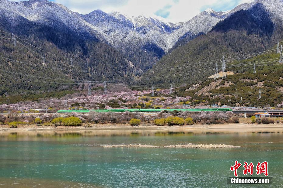 雪山、雅魯藏布江、高原複興(xing) 號以及沿線的桃花。