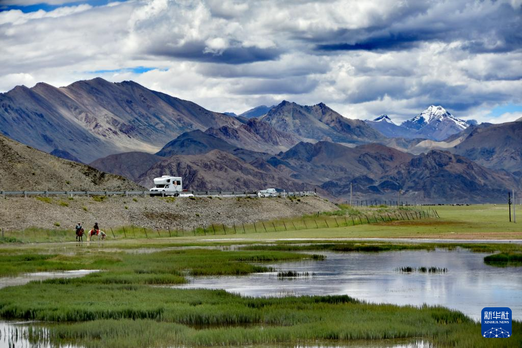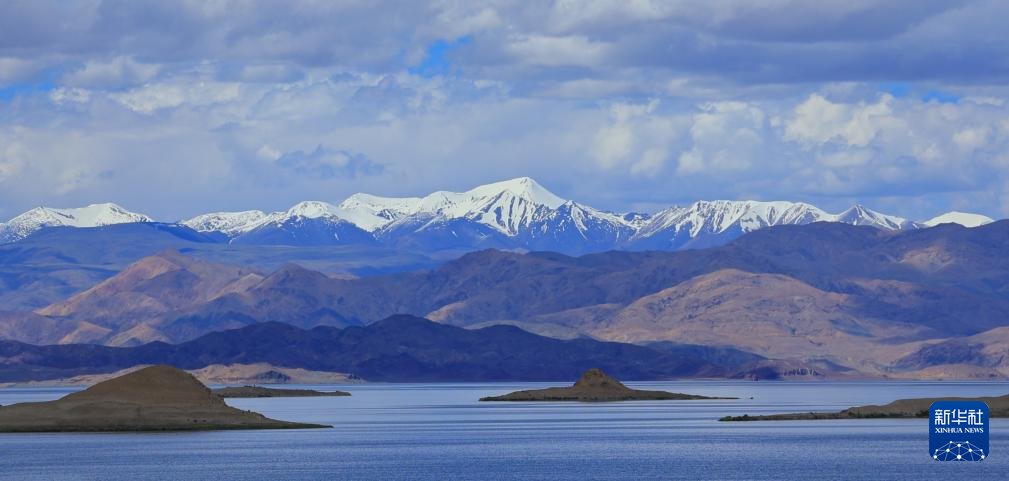 班公湖遠處的雪山(7月28日攝)。新華社發 (尚路航攝)