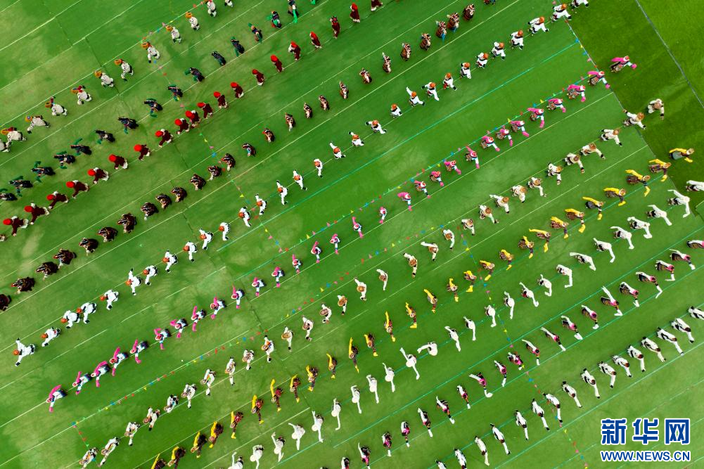 8月10日,演員在開幕式上表演舞蹈(無人機照片)。新華網 旦增努布 攝