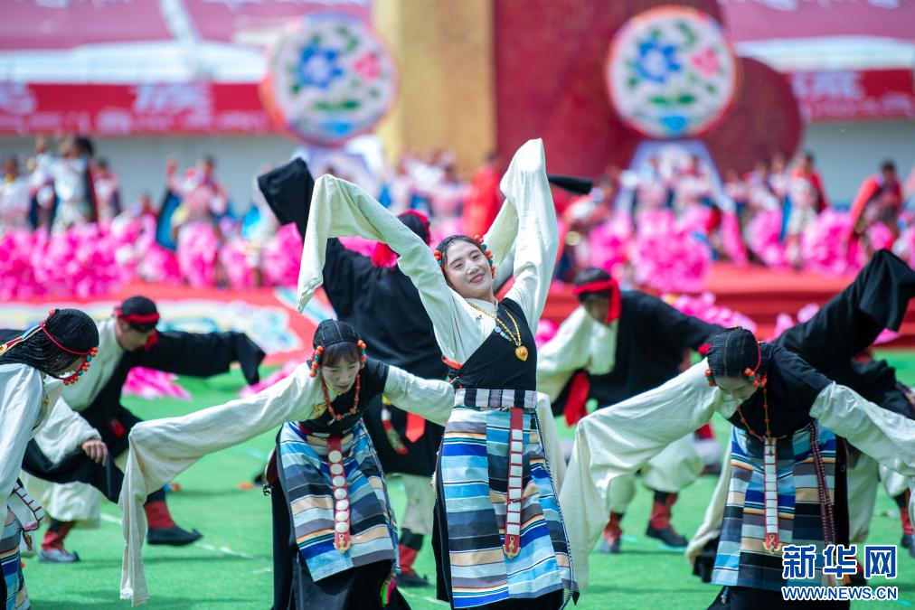 8月10日,演員在開幕式上表演舞蹈。新華網 旦增努布 攝