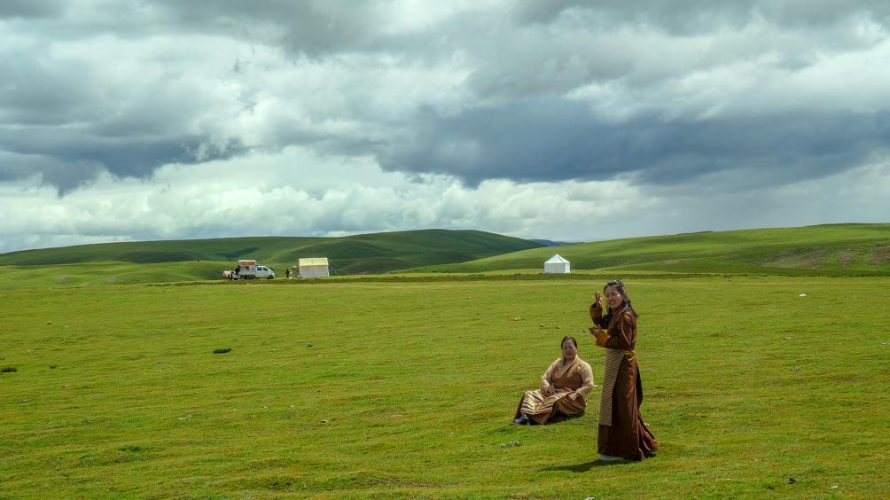 8月11日,遊客在羌塘草原上賞景遊樂(le) 。新華社記者 陳澤鵬 攝