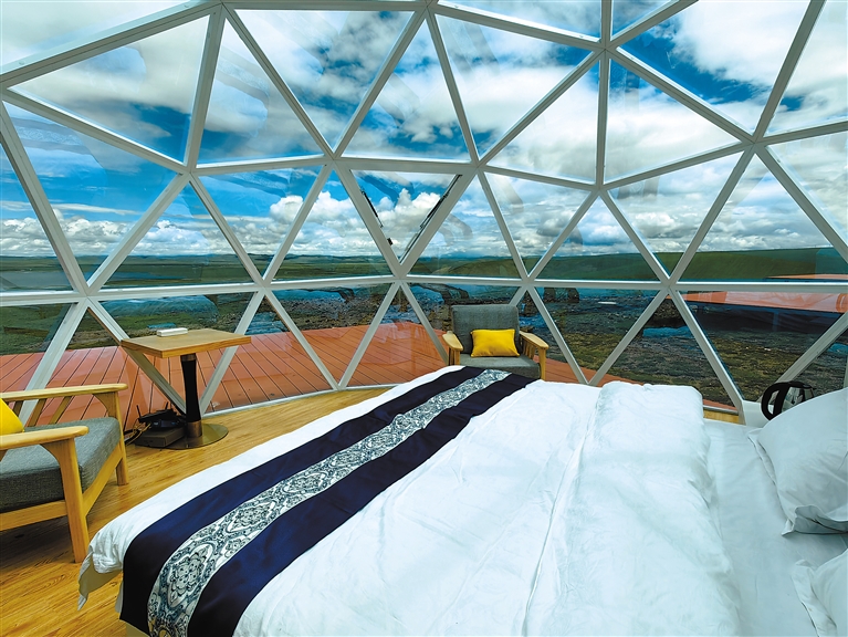 圖為(wei) 夯錯濕地暗夜星空景區內(nei) 設置的觀景設備(8月25日攝)。新華網發 蘇思源 攝