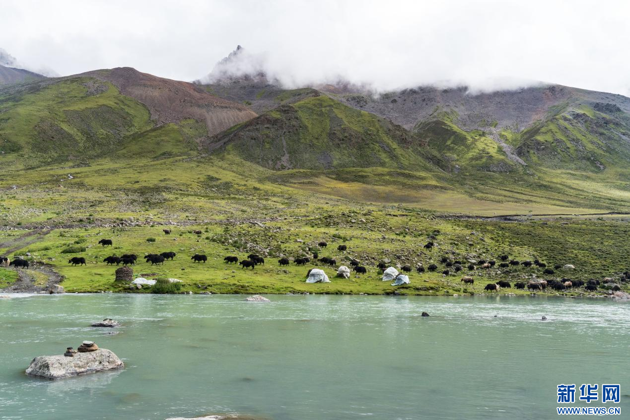 圖為(wei) 湖邊悠閑吃草的犛牛(8月27日攝)。 新華網發 蘇思源 攝