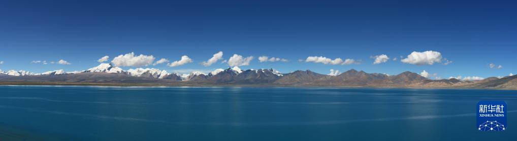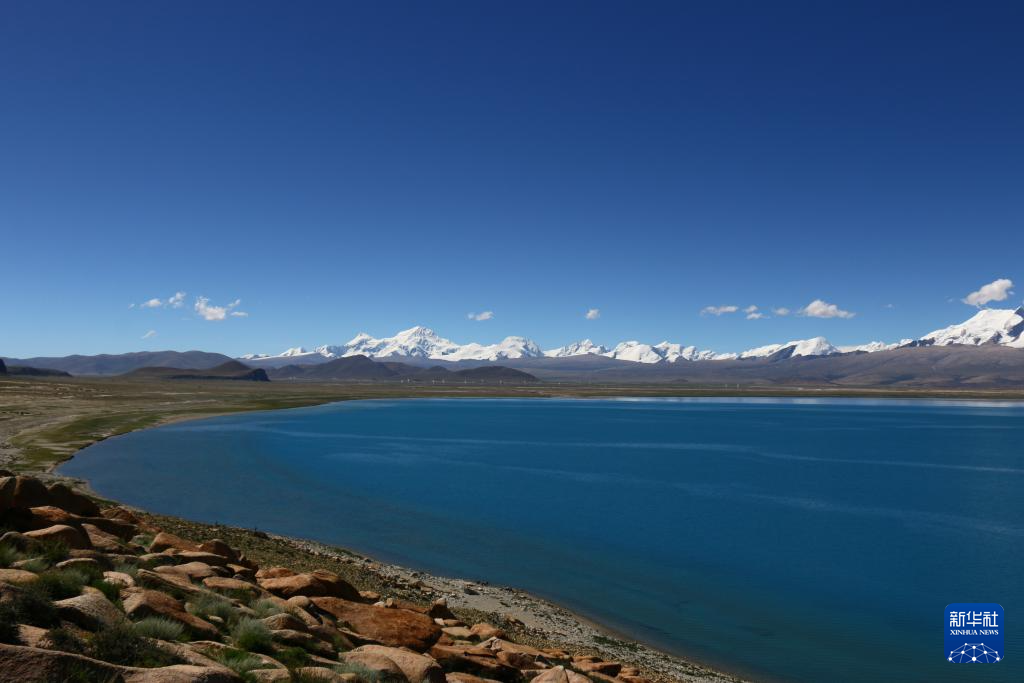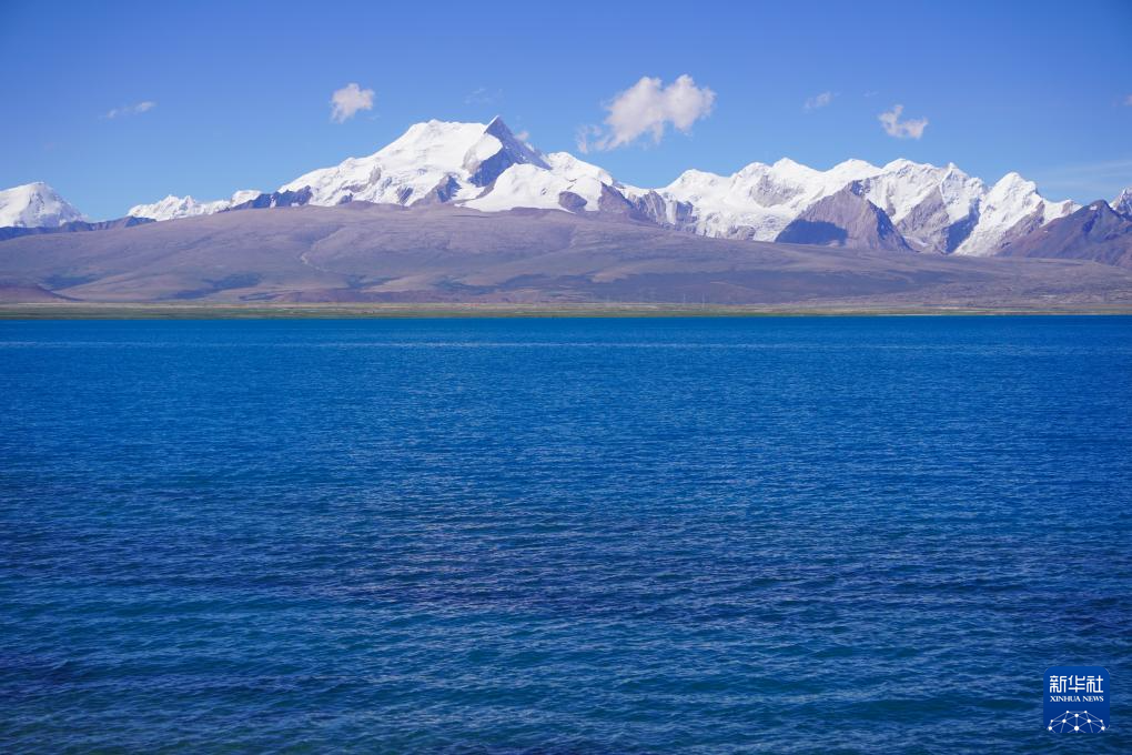 佩枯錯與(yu) 遠處雪山交相輝映(9月2日攝)。新華社記者 李鍵 攝