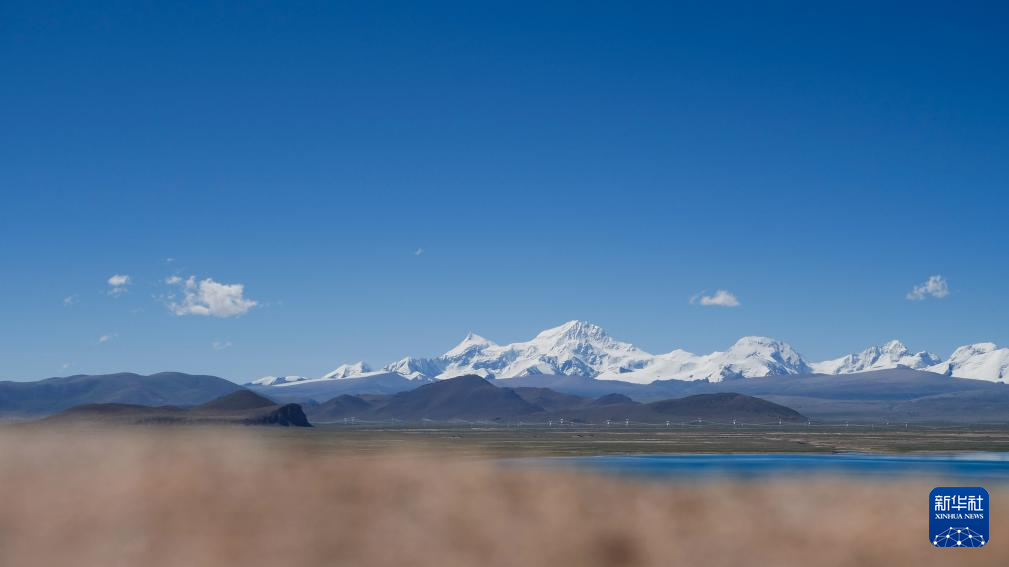 從(cong) 佩枯錯旁遠眺希夏邦馬峰(9月2日攝)。新華社記者 陳澤鵬 攝