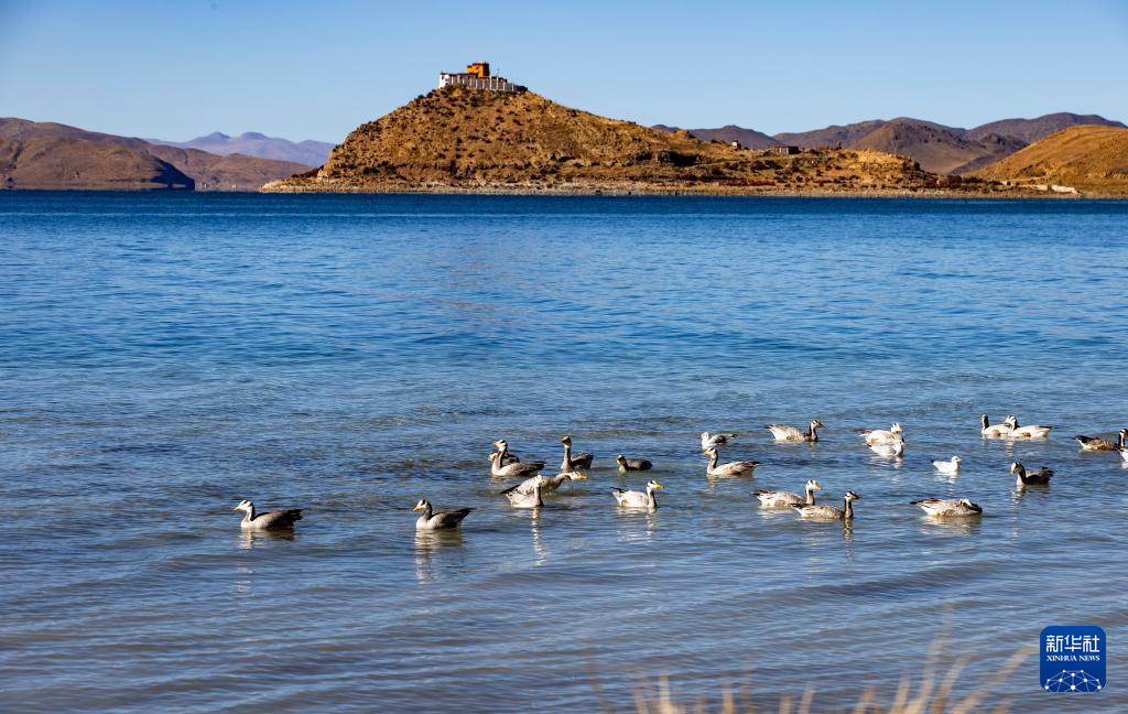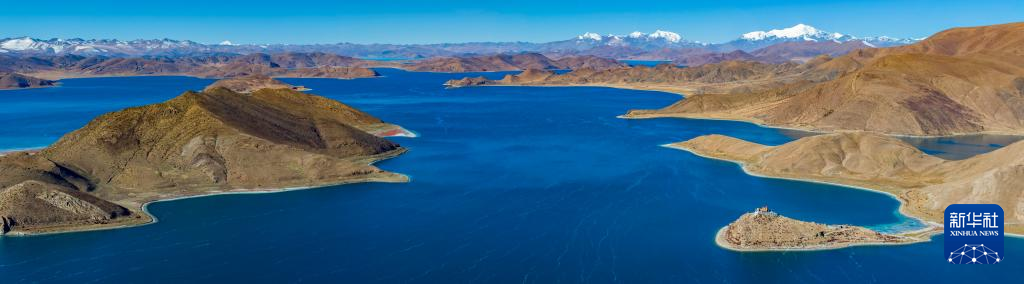 這是10月25日拍攝的羊卓雍錯和日托寺。新華社記者 薑帆 攝