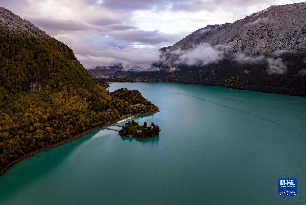 這是在林芝工布江達縣拍攝的巴鬆錯(無人機照片,10月28日攝)。新華社記者 薑帆 攝