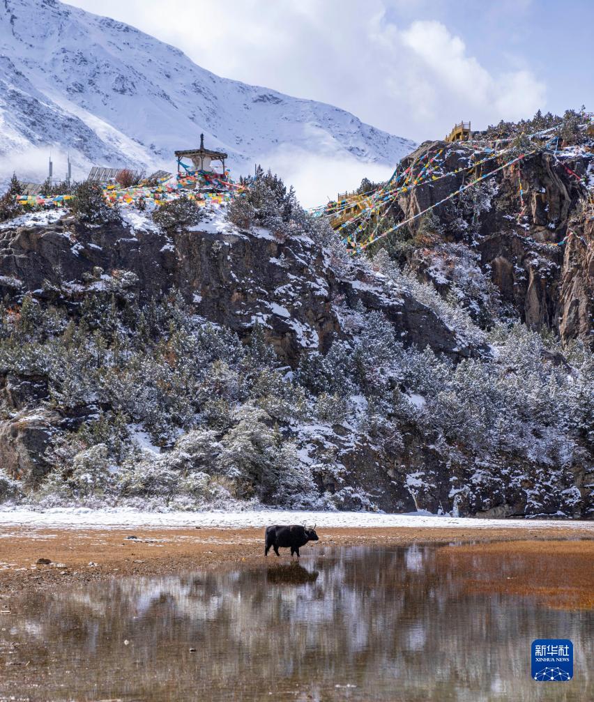 西藏昌都市邊壩縣位於(yu) 念青唐古拉山脈南麓,由於(yu) 海拔較高,10月末的邊壩縣已迎來降雪。這裏雪山聳立,冰洞湛藍,飛雪綿綿,岩羊在雪麵上行走,美景如畫。