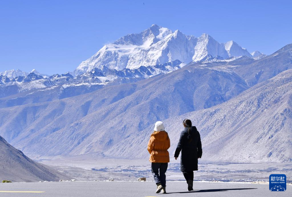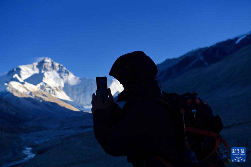 深秋,西藏日喀則市定日縣天高氣爽,遊客前來觀賞世界最高峰——珠穆朗瑪峰。