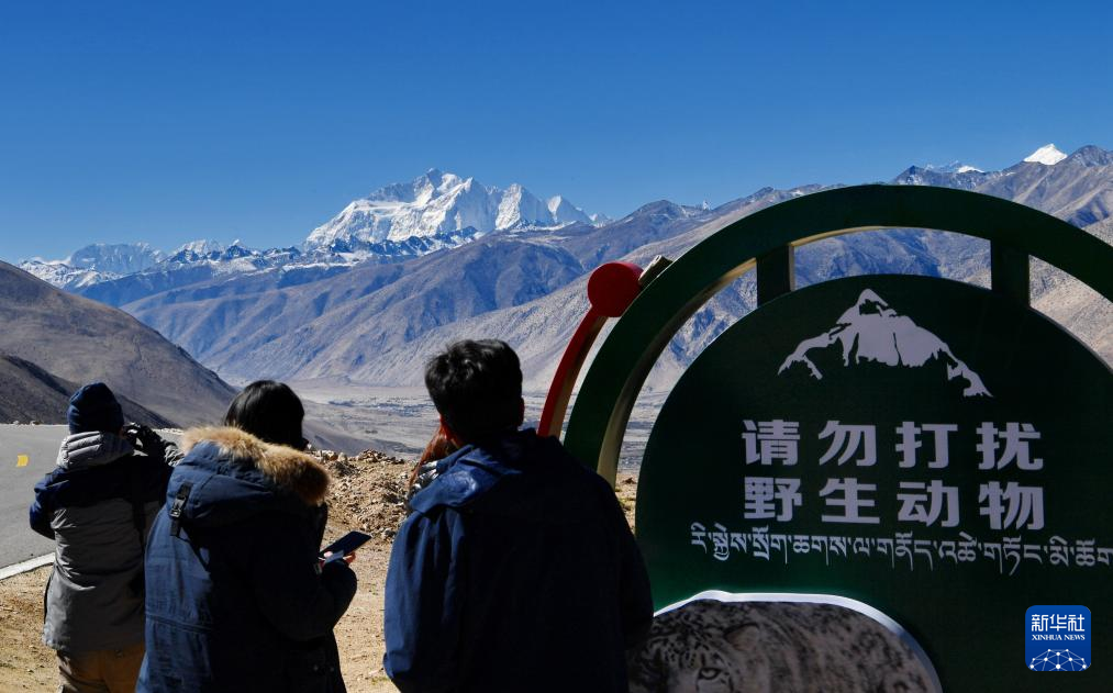 遊客在珠穆朗瑪國家公園欣賞珠峰景色(10月27日攝)。新華社記者 張汝鋒 攝