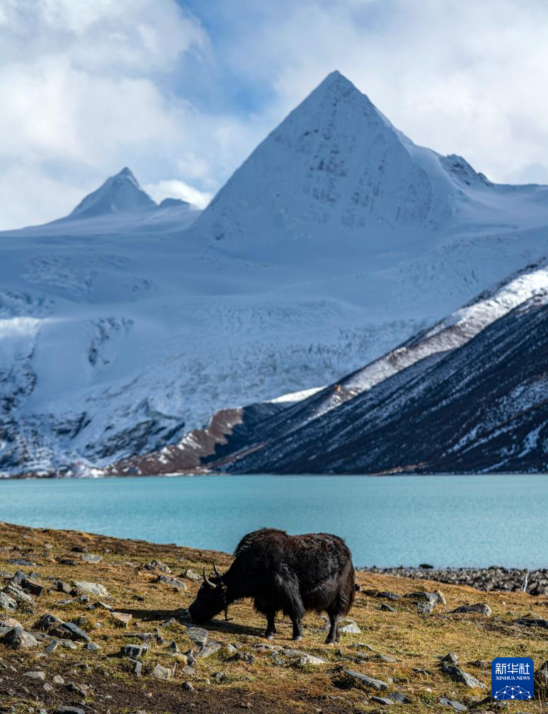 犛牛在薩普雪山腳下的草場上吃草(10月28日攝)。新華社記者 孫非 攝