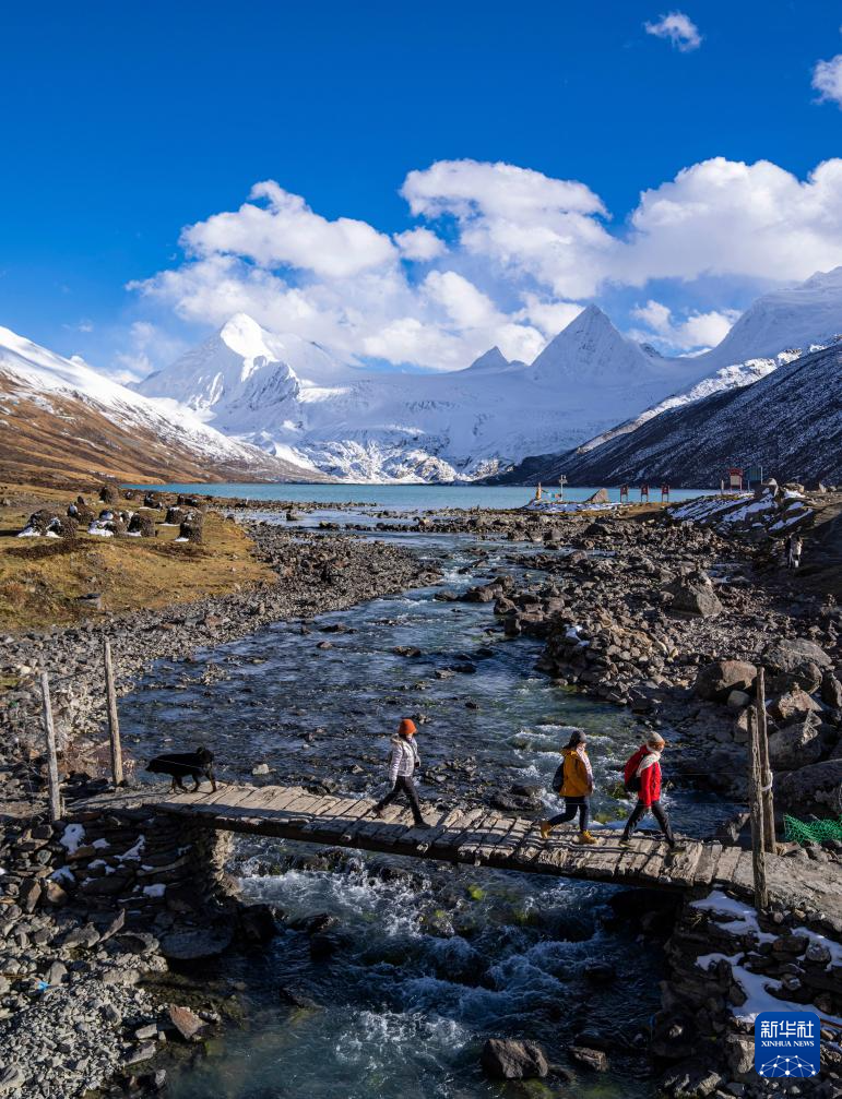 遊客徒步經過薩普雪山腳下的木橋(10月28日攝)。新華社記者 孫非 攝