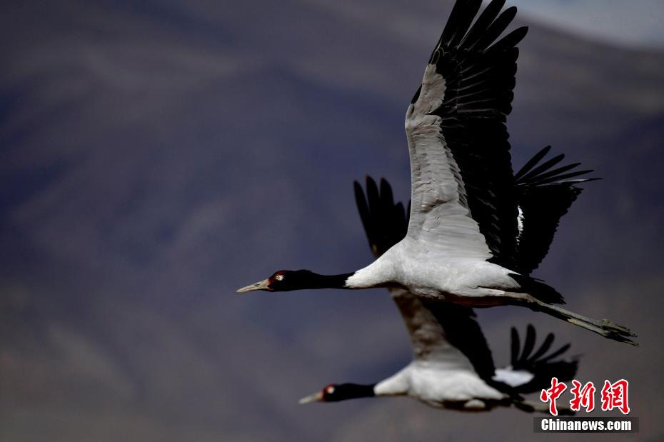 圖為(wei) 11月21日,西藏日喀則市桑珠孜區邊雄鄉(xiang) 黑頸鶴振翅高飛。李林 攝