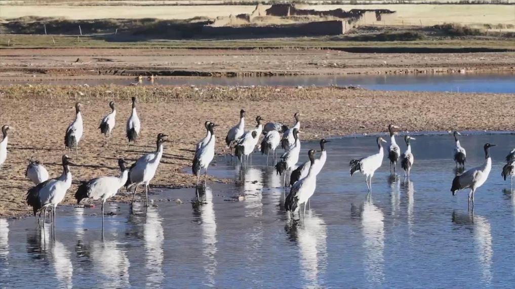 黑頸鶴是青藏高原特有的鳥類,中國國家一級保護動物。位於(yu) 雅魯藏布江與(yu) 年楚河交匯處的西藏日喀則市桑珠孜區邊雄鄉(xiang) 是黑頸鶴的主要越冬地之一,這裏有廣袤的農(nong) 田和濕地,黑頸鶴可在此覓食、過冬。