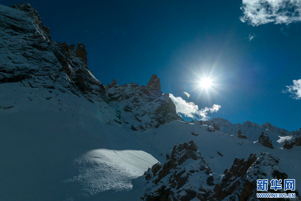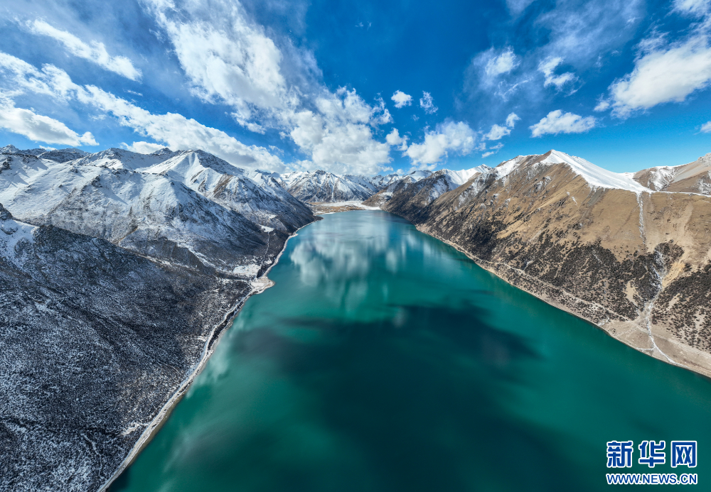 12月10日,從(cong) 嘉乃玉錯湖邊拍攝的雪山(無人機照片)。新華網 旦增努布 攝