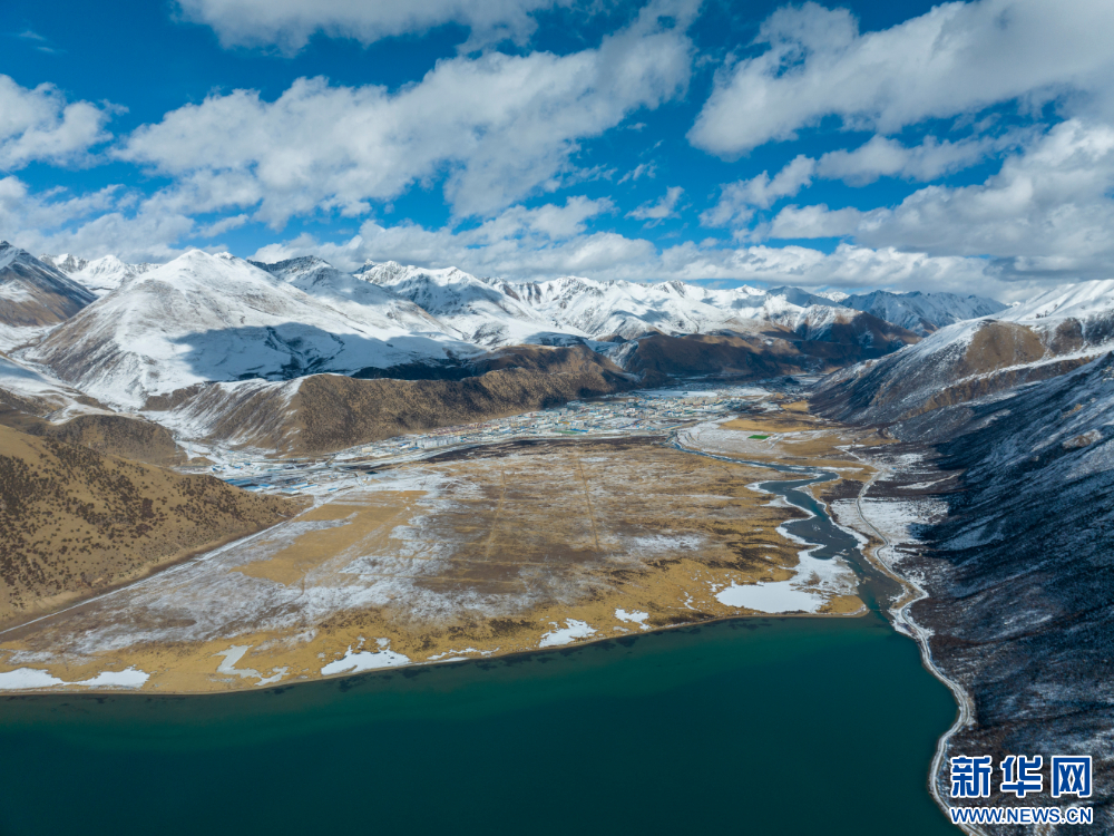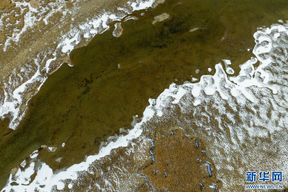 12月10日拍攝的嘉乃玉錯湖邊(無人機照片)。新華網 旦增努布 攝