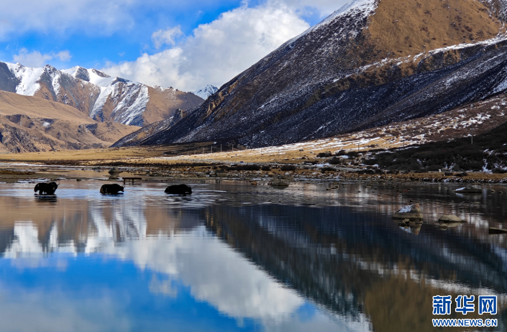 12月10日,在嘉乃玉錯湖邊拍攝的犛牛。新華網 旦增努布 攝