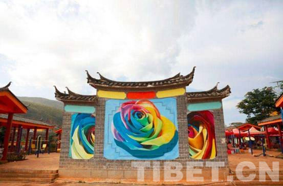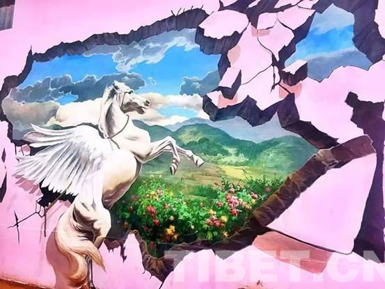 圖為(wei) 九色玫瑰小鎮的大型3D壁畫