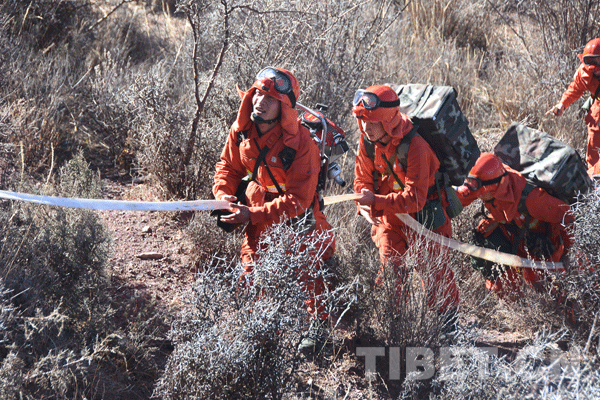 圖為(wei) 官兵背負滅火裝備趕赴一線火場