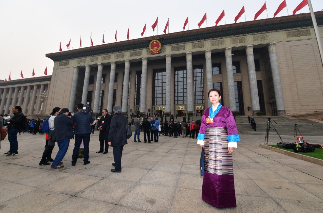 圖為(wei) 3月3日全國政協十三屆一次會(hui) 議開幕會(hui) 邊巴拉姆留影 攝影:旦增西旦