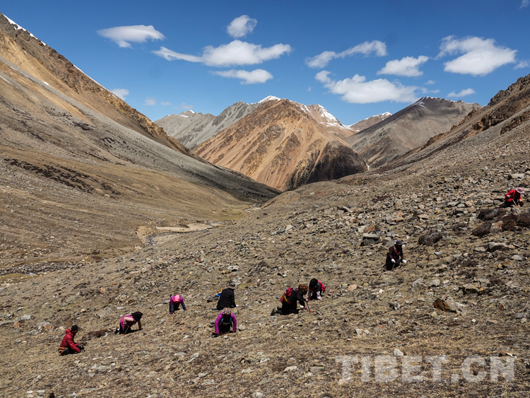 圖為(wei) 村民們(men) 爬到5000多米高的山上,四肢著地尋找蟲草。