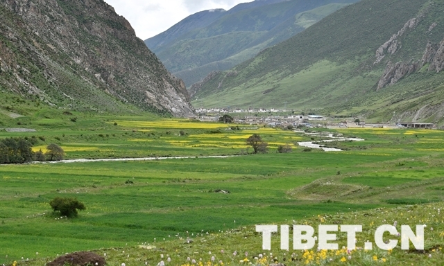仲夏時節的雪林斯布牧場,水草肥美。綠草與(yu) 野花融為(wei) 一體(ti) ,綿延至天際。成群結隊的犛牛,也愜意的在這裏覓食。考察完雪林斯布牧場專(zhuan) 業(ye) 合作社後,十一世班禪一行來到這裏,考察調研夏季牧場放牧點等情況。