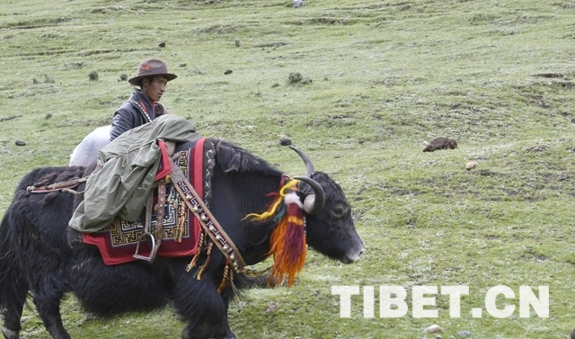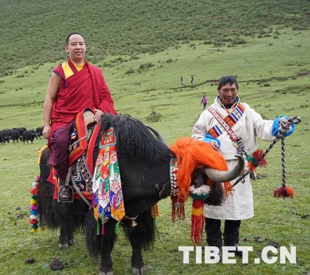 圖為(wei) 十一世班禪騎著犛牛漫步牧場。攝影:王淑
