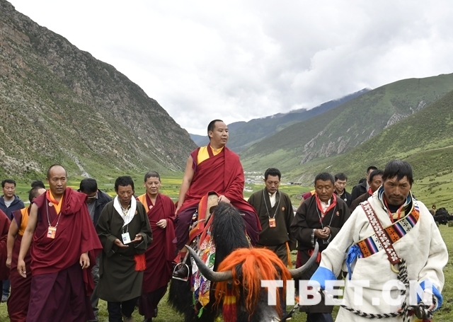 圖為(wei) 在眾(zhong) 人簇擁下騎著犛牛的十一世班禪。攝影:王淑