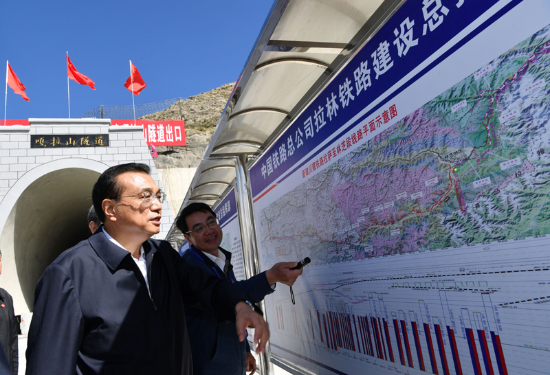 圖為(wei) 李克強總理7月26日考察川藏鐵路拉林段施工現場。圖片來源:中國政府網