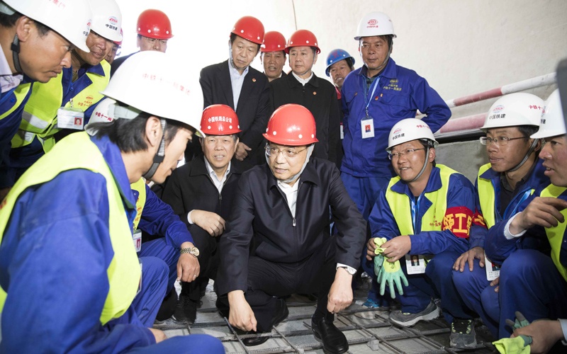 7月26日,李克強總理在山南市川藏鐵路拉林段施工現場。來源:中國政府網