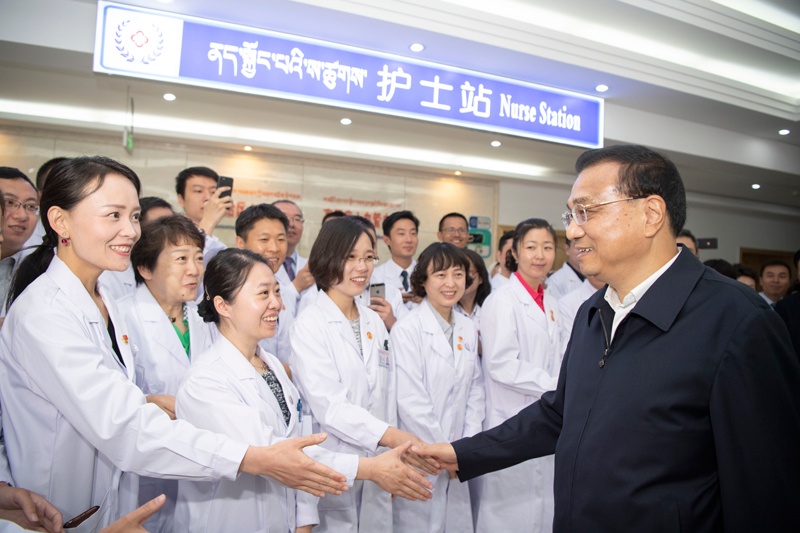 7月27日,李克強總理來到西藏自治區人民醫院,看望慰問援藏醫護人員。來源:中國政府網