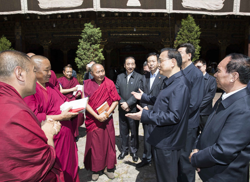 7月26日下午,李克強總理來到拉薩市大昭寺看望慰問西藏宗教界人士。始建於(yu) 653年的大昭寺是西藏現存最輝煌的吐蕃時期寺廟建築。李克強向西藏廣大宗教界人士致以誠摯的問候和衷心的祝福。他說,大昭寺是藏傳(chuan) 佛教的聖殿,同時見證了漢藏和親(qin) 、民族團結的光輝曆史。希望西藏廣大宗教界愛國人士要以曆輩高僧大德為(wei) 榜樣,為(wei) 維護祖國統一、民族團結、社會(hui) 和諧作出有益貢獻,促進宗教和睦、佛事和順、寺廟和諧。祝願大家精修得道、身體(ti) 健康、紮西德勒!