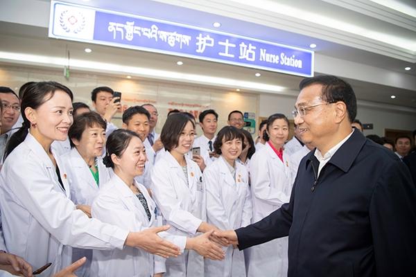 圖為(wei) 李克強看望援藏醫護人員。圖片來源:中國政府網