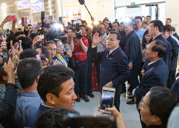 圖為(wei) 李克強總理來到位於(yu) 拉薩市柳梧新區的“柳梧蜂巢+創新中心” 圖片來源:中國政府網