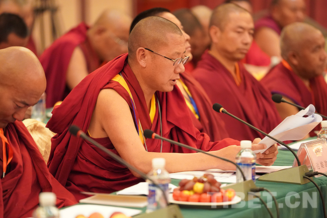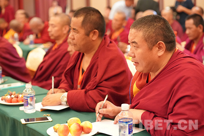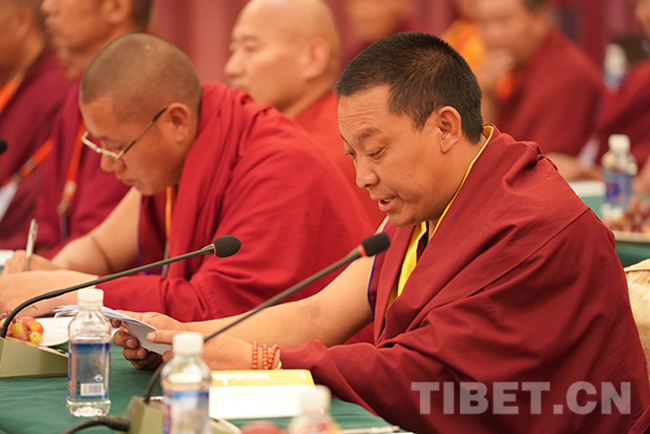 圖為(wei) 山南市佛教協會(hui) 會(hui) 長達娃次仁發言。攝影:王淑
