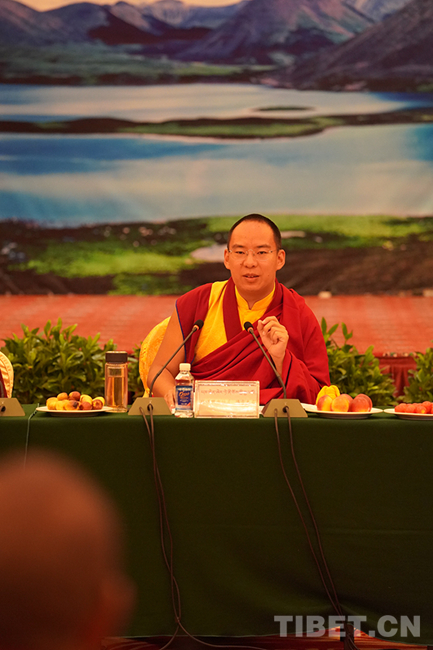 十一世班禪在山南市宗教界代表人士座談上講話。攝影:王淑