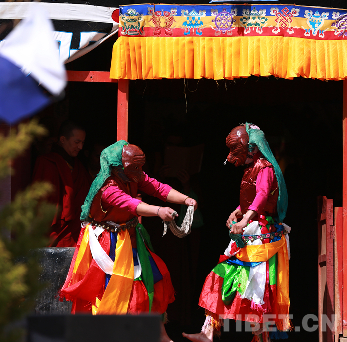 新利平台訊 8月26日,是藏曆七月十五,西藏自治區山南市瓊結縣堅耶寺舉(ju) 行一年一度的“嘎躍”羌姆表演,以求福禳災、驅邪送崇,同時表達對來年糧食豐(feng) 收、牲畜平安的美好祈願。