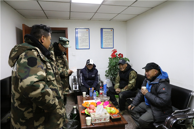 圖為(wei) 獲救的三位遊客在邊防官兵救助並安頓後逐漸恢複體(ti) 力。 攝影:何宇恒