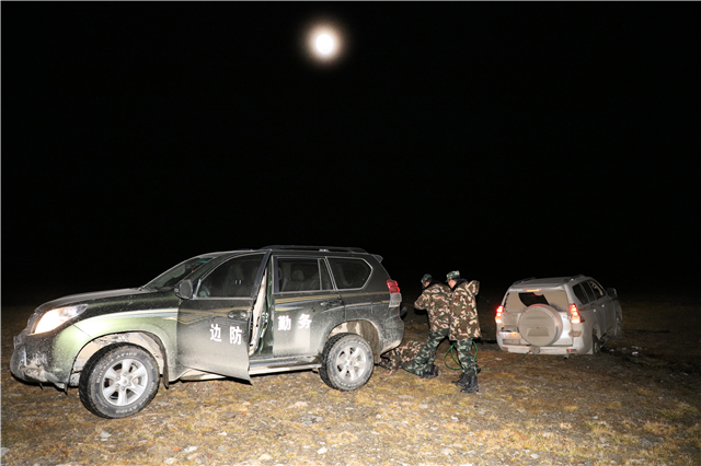 中秋節前,大家在屋脊上、國旗下、小院裏,一起吃著月餅,看著天上那麽(me) 近的月亮,本該是一件愜意的一刻。可這時,突然機要室接到了電話:“大隊部接到救助電話,說有人被困冰川無人區!”派出所的官兵一下緊張起來。