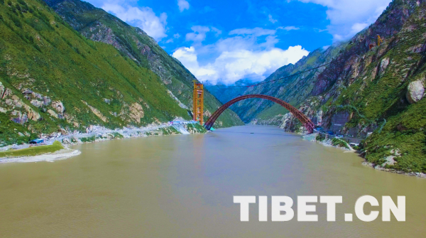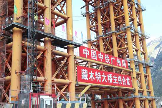 藏木特大橋位於(yu) 西藏加查縣安饒鎮桑加峽穀內(nei) ,地處海拔3350米的山地,主橋橫跨雅魯藏布大峽穀,水深66米,大橋采用430米中承式鋼管混凝土拱,拱高112米,是首座跨過雅魯藏布江的鐵路橋梁。