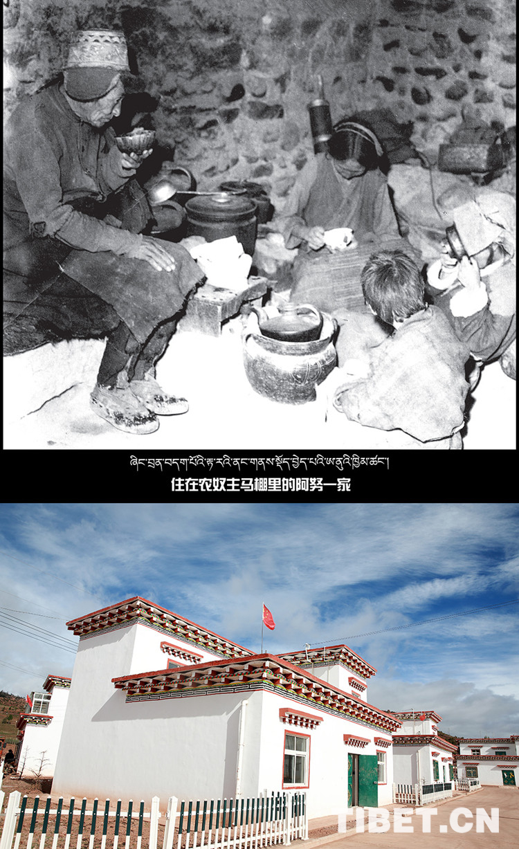上圖:住在農(nong) 奴主馬棚裏的阿努一家。圖片來源:西藏日報 下圖:西藏昌都芒康縣嘎托鎮普拉村獨具藏家特色的小洋樓。攝影:陳衛國