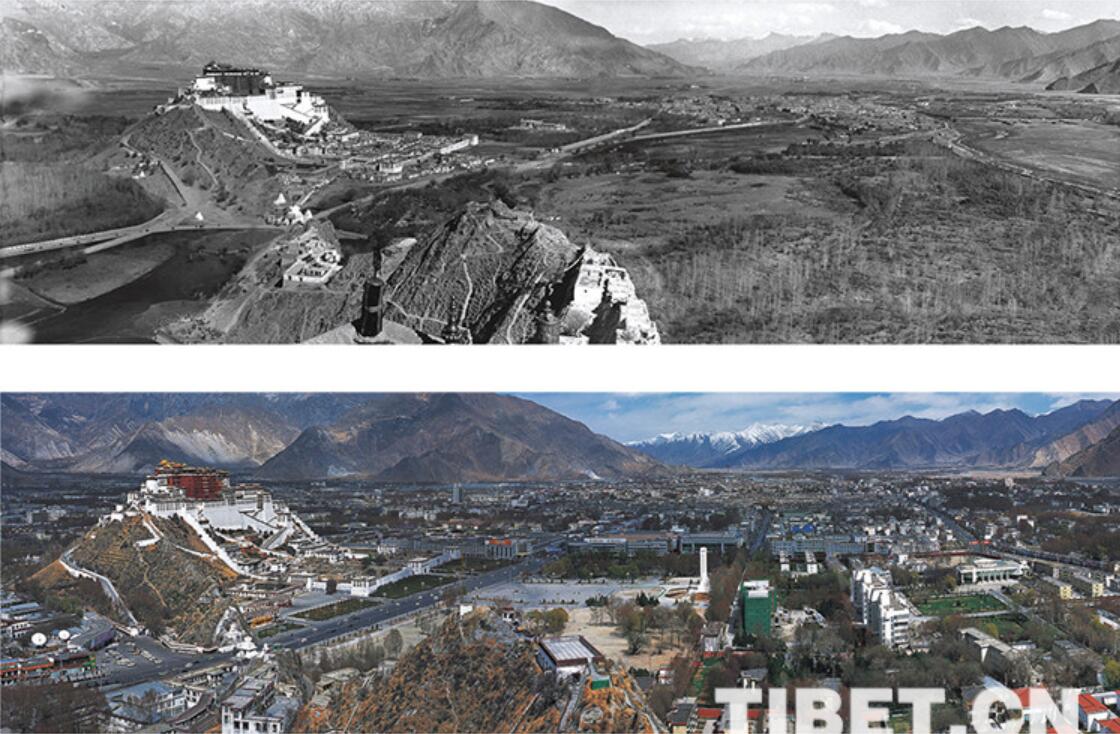 圖為(wei) 1942年和2005年拉薩全景。上圖攝影:德木•丹增加措 下圖攝影:德木•旺久多吉