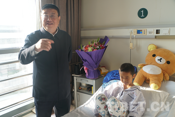 12日上午,北京電力醫院黨(dang) 委書(shu) 記辛利平在得知小宋鍵要進行手術後,帶著營養(yang) 品來到病房,鼓勵宋鍵說:“別害怕,手術後你就可以參加體(ti) 育課了,以後要好好學習(xi) ,將來到北京上大學,我們(men) 還能再見麵。”