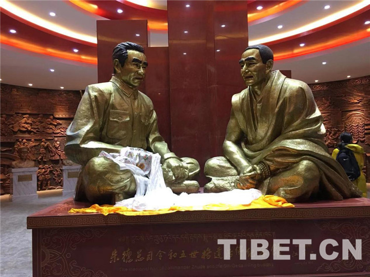 圖為(wei) 在甘孜縣朱德總司令和五世格達活佛紀念館內(nei) 兩(liang) 人促膝長談塑像。