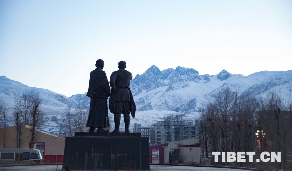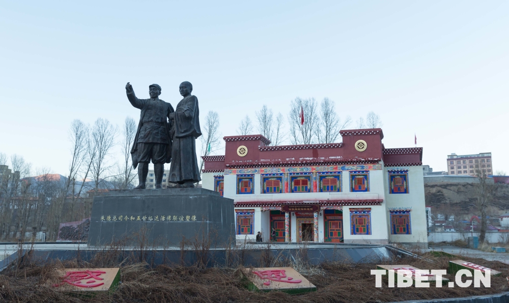 圖為(wei) 博物館前朱德總司令與(yu) 五世格達活佛雕像。