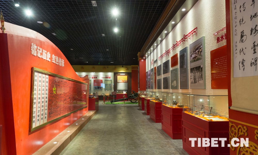 圖為(wei) 館內(nei) 詳細陳列了五世格達活佛生平介紹、紅軍(jun) 長征途經甘孜的事跡和革命文物。
