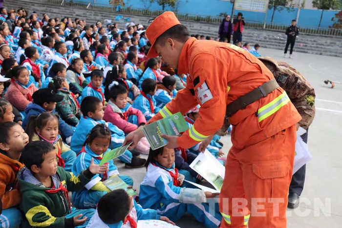 圖為(wei) 在林芝市察隅縣,森林消防員走進學校開展防火宣傳(chuan) 。劉光寧攝